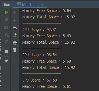 테스트 코드 : CPU사용률, 메모리 잔여량, 전체 물리메모리량
