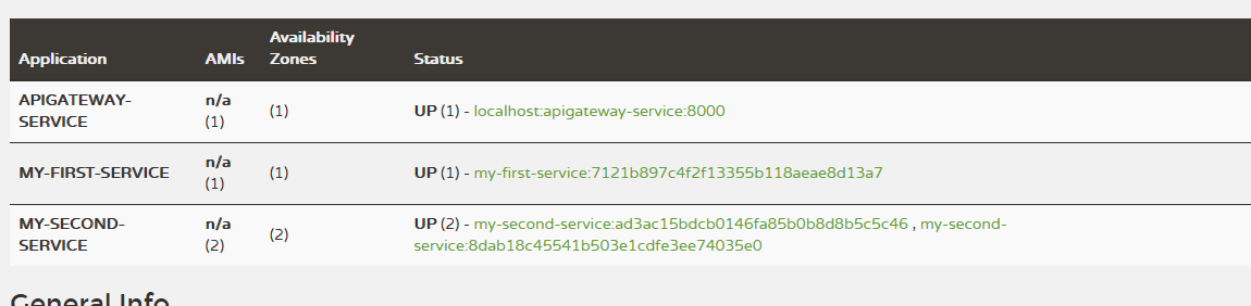 그리고 각 서버들을 실행하여 Eureka에 접속해보면 아래와 같은 결과를 볼 수 있다